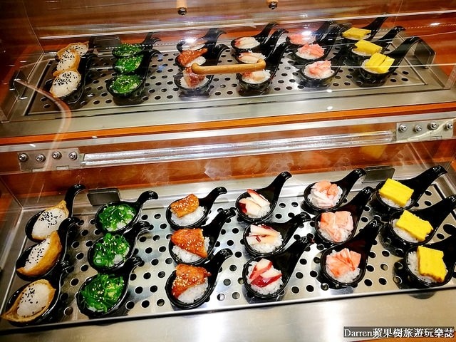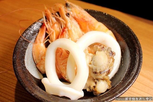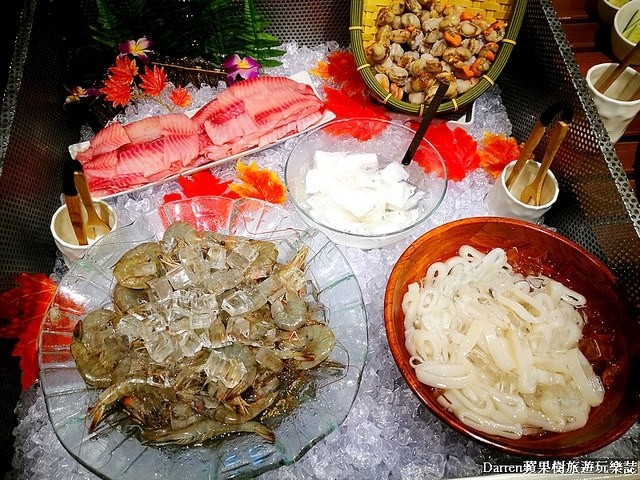 鯛魚片、鮮蝦、曼波魚、帆立貝、魷魚圈等,光是自助吧選擇性就很多,喜歡吃菜或喜歡吃海鮮的朋友都有兼顧到