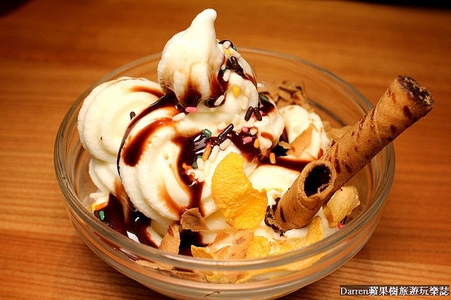 最後用冰淇淋來結尾,しゃぶしゃぶ温野菜的冰淇淋是用義美的冰淇淋,可以依自己喜歡添加一些配料來吃