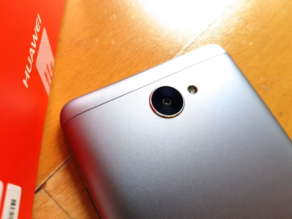 ▲ 背部可以看見灰色的金屬光澤在日光下反射的內斂質感,而機身背後雖然沒有指紋辨識但有著 1200 萬畫素相機鏡頭與華為 logo。