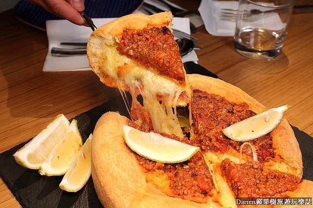 這時候就能挑戰牽絲比賽也沒問題起司控絕對會失控一定要來打卡披薩融合香濃起司和鹹香肉醬味道也很棒
