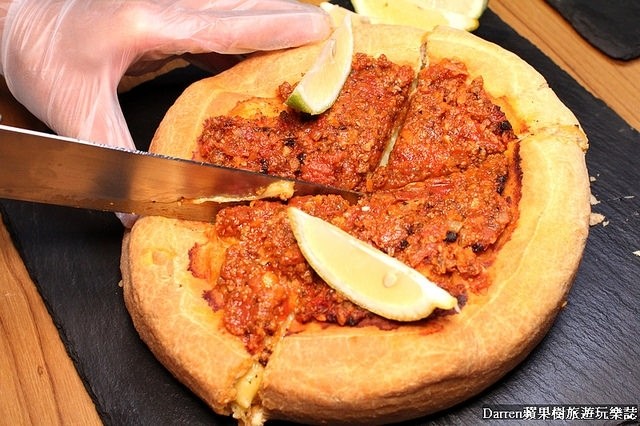 最吸晴的就是厚達5公分的深盤披薩,滿滿起司可以挑戰最長的牽絲也有蝶豆花白醬口味讓人享受視覺體驗
