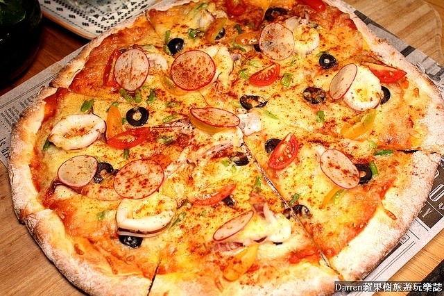 喜歡吃披薩的朋友這裡的義式薄片披薩也很有看頭,同樣使用西班牙 Pira 烤爐柴火選用龍眼木柴燒及木炭直火碳烤木
