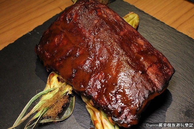 來增加視覺上的體驗這道火燒豬肋排選用台灣豬種上排,以混合番茄醬、Tabasco、烏斯特醬、梅林辣醬