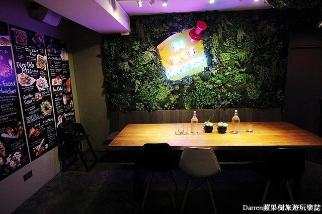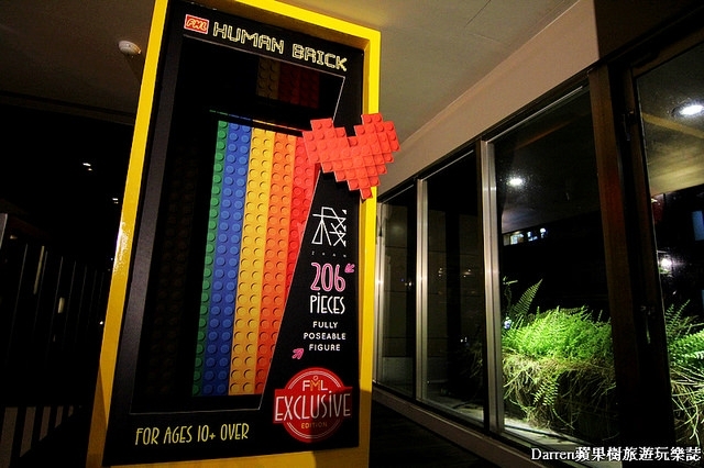 走進餐廳內用餐空間共有兩個樓層店內空間多處也都以樂高元素來點綴,一樓的植栽牆鑲嵌上的霓虹燈管