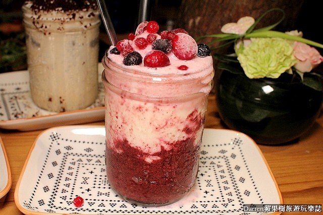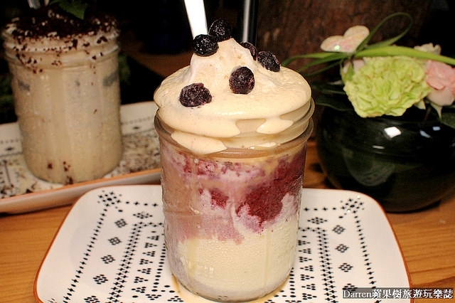 最後這款是融合香甜香草冰淇淋、滋味酸香的藍莓冰沙加上拿鐵冰沙,酸甜帶有咖啡香氣漸層效果好拍又好喝