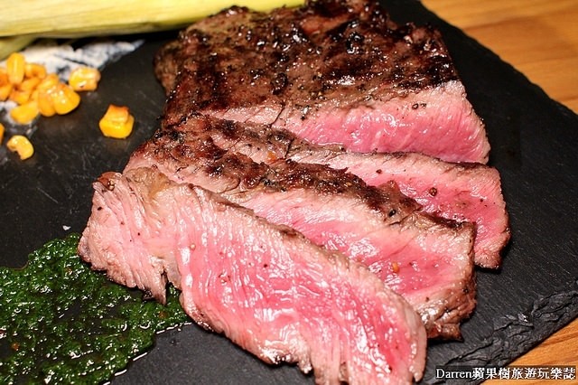 沙拉同樣走花圈視覺風格,四盎司的丹佛牛排以一台要價超過80萬台幣的西班牙Pira烤箱碳烤至五分熟