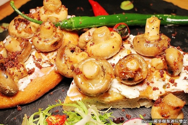 棧F.M.L Café花苑拿鐵不僅料理很有畫面在菜色品名上也很有趣香煎蘑菇、炸青紅辣椒,灑在上方土壤般