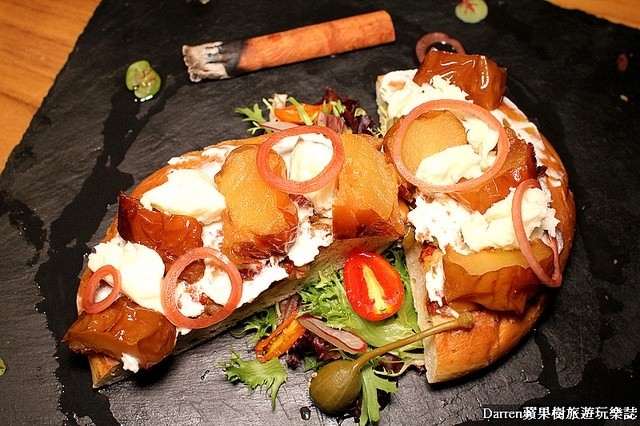 到使用西班牙進口烤爐,選用龍眼木柴燒的三明治、披薩、輕肉食等多樣料理外觀及味道都表現不錯唷
