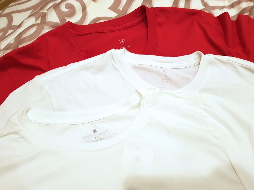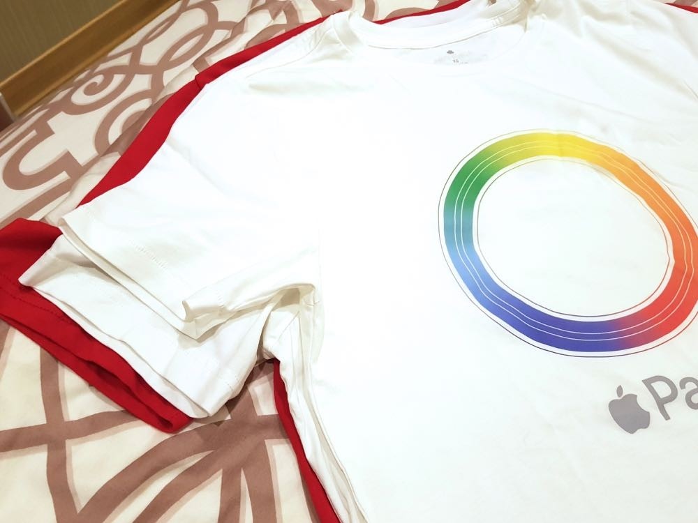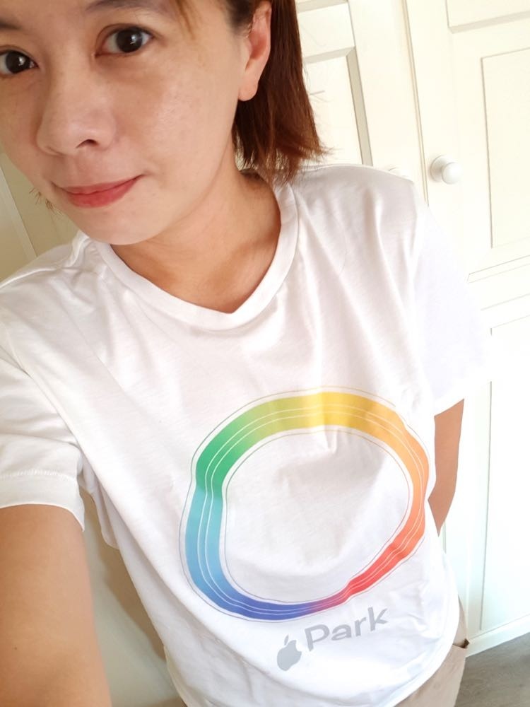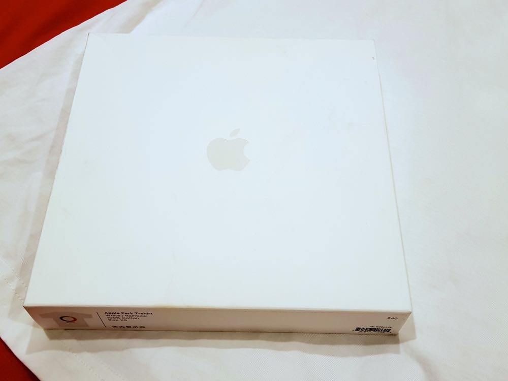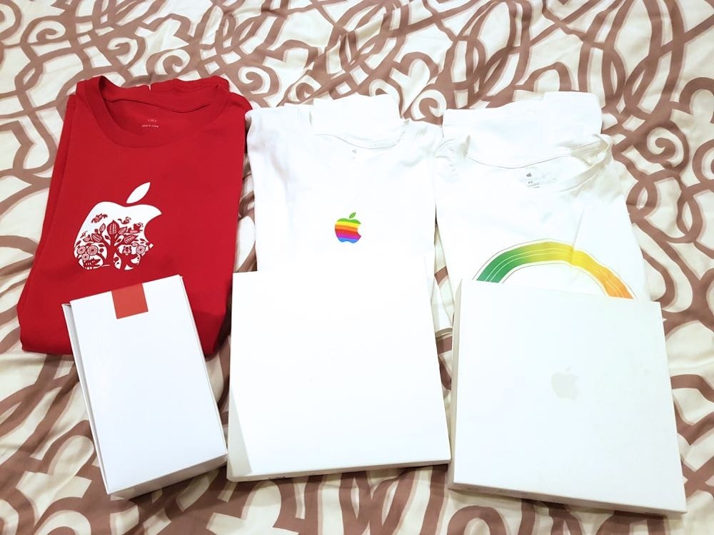 Apple 總部的一般款 T Shirt 、台灣 Apple Store 開幕的紀念 T,現在再加上 Apple 新總部的特定款,剛巧三個包裝設計、衣服設計都不相同,不過看著好友幫忙慢慢蒐集著自己很喜歡的特色 Apple T,真的有一種很開心很開心的感覺呢!