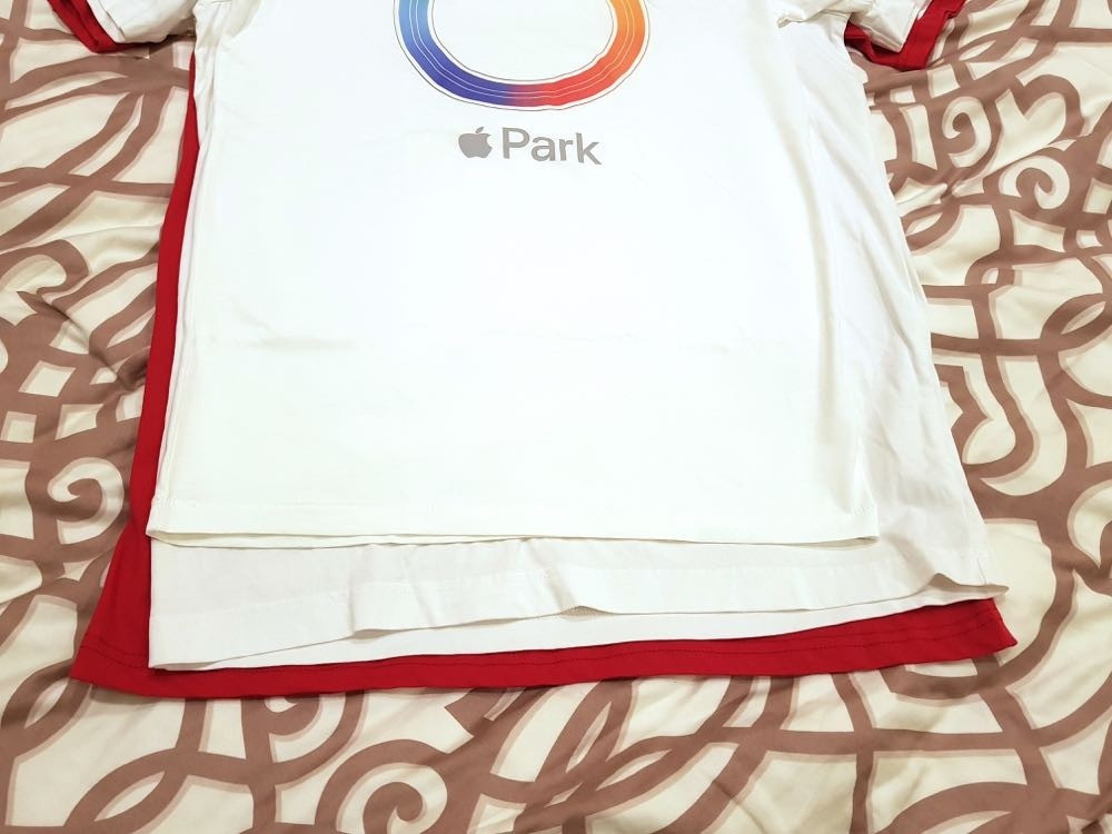 ▲ 背面的領口下方就是淡淡淺灰色的 Apple Park California 95014 兩行字樣。