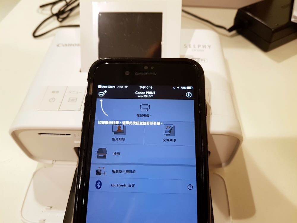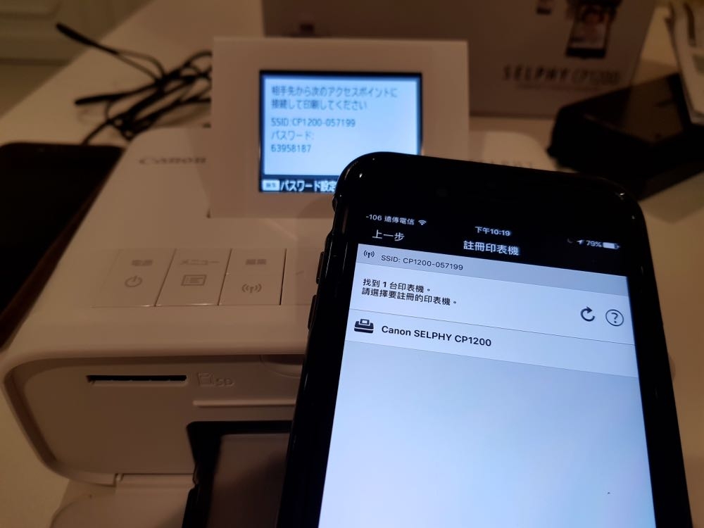 操作方式也非常的簡單。CP1200 支援 iOS 與 Android 兩大作業系統,因此只要下載 Canon Print 的應用程式,按下主機上方有著 WiFi 符號的按鍵,等到螢幕上顯示 WiFi 熱點名稱和密碼,這時將行動裝置的 WiFi 選擇 CP1200 也就是螢幕上提供的那組,連線後就能開始準備印照片!
