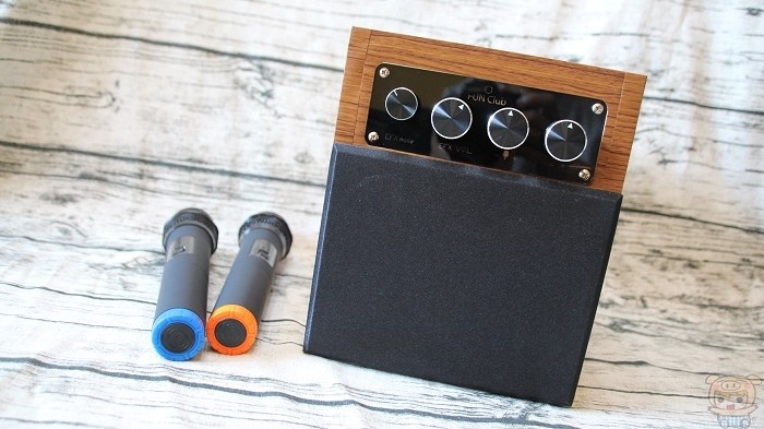 在介紹 FUN Cube 潮立方 本體之前,我們先來看一下標準配備的兩支麥克風吧!它有個非常酷炫的地方,就是有點別於一般市面的藍牙麥克風只能連接單支麥克風的缺點,FUN Cube 潮立方麥克風利用 U 頻的傳輸技術,所以可以同時以無線的方式連結兩支麥克風!讓你在家中歡唱不受距離與人數的影響,盡情與親友來個深情對唱!