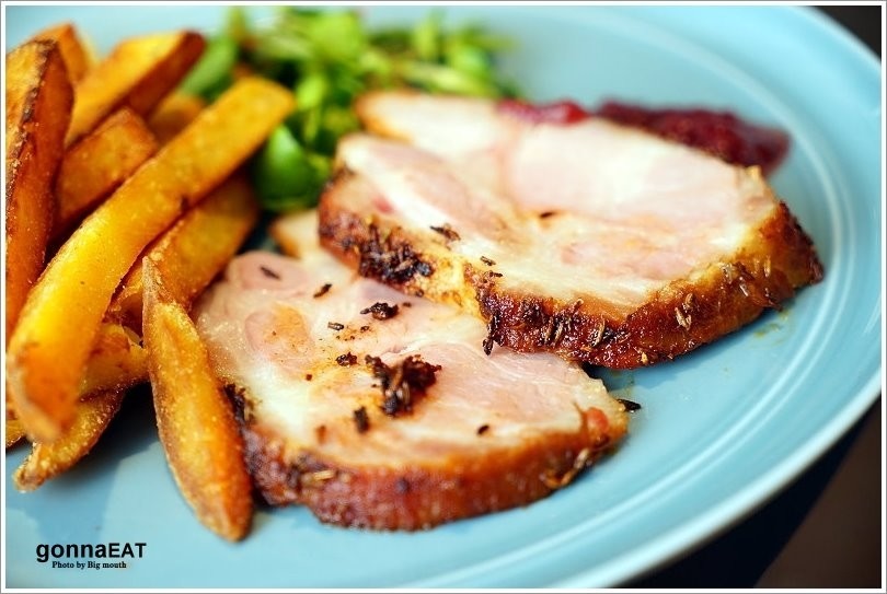 ▼72小時茴香慢烤活菌豬(4oz),特別採用從小吃益生菌長大的活菌豬豬肩肉部位,以柳橙、迷迭香醃製兩天入味後,再低溫烹調24小時,最後再以高溫烤至外皮香酥微脆,一旁搭配生菜與地瓜薯條,份量同樣不容小覷!