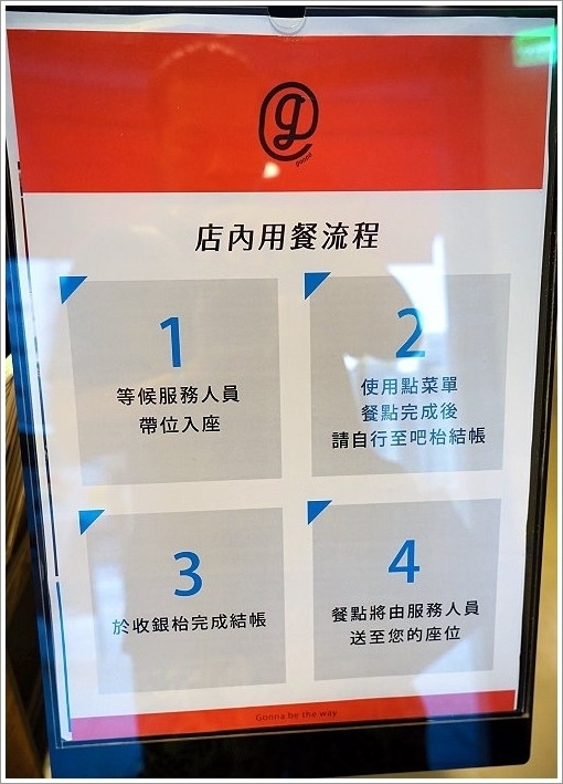 ▼店內的用餐流程也很簡單,服務人帶位後,在座位填好點菜單再拿至吧台結帳,餐點就會由服務人員送上桌囉!因為這裡採取的是半自助式的方式,所以也不另收服務費,真是太棒啦!