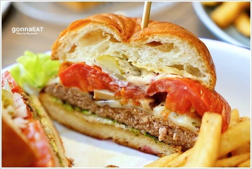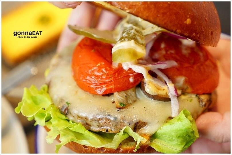 ▼一口咬下,外酥內軟的麵包帶點香Q的嚼勁,越嚼越有奶油的香味竄出,光是這個麵包就相當有水準!搭配軟嫩多汁的牛肉、香濃陳年乳酪更為提味好吃,一口咬下完全就是夢幻的口感;加上烤野菇、烤番茄、酸黃瓜、生菜等配料更為清爽解膩,不僅層次更豐富,口感也能保持濕潤又甜美,讓人忍不住一口接一口停不下來啊!