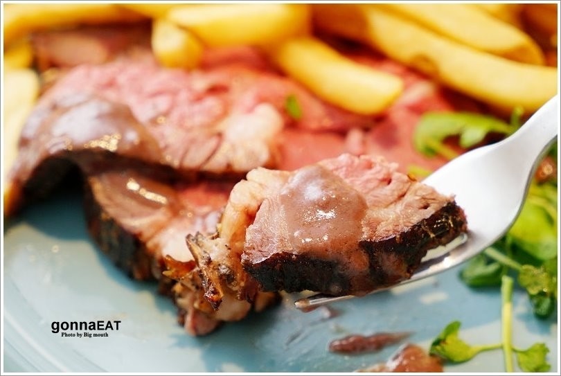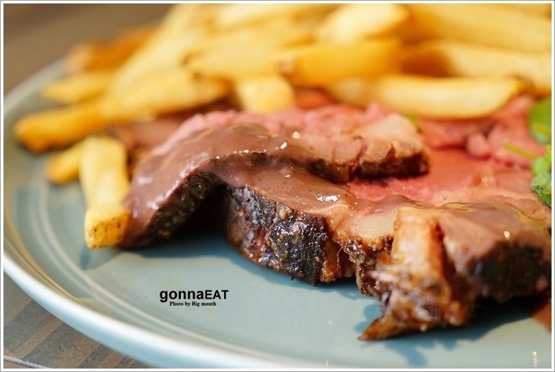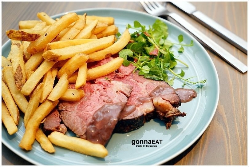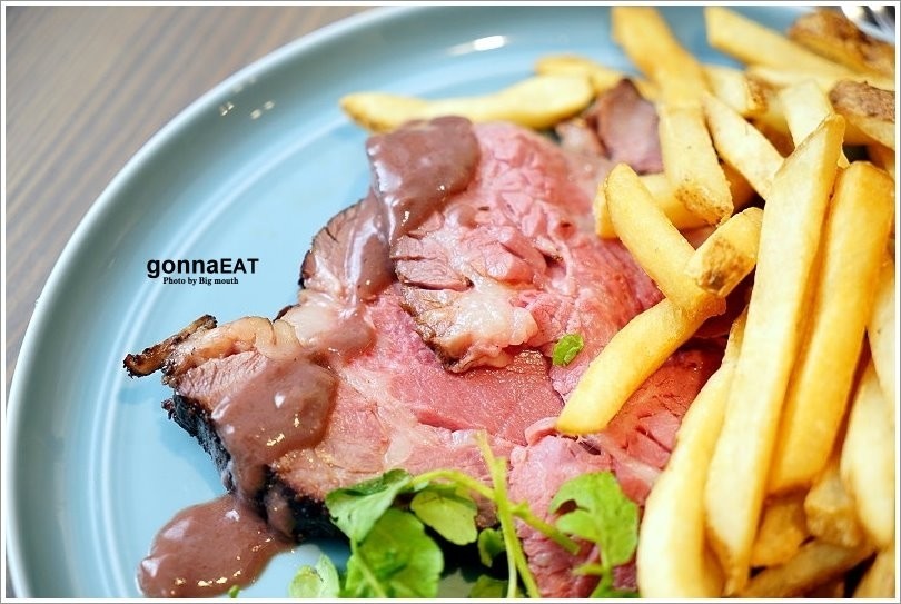 ▼舒肥烤安格斯自然牛(prime級翼板牛排8oz),採用安格斯自然飼養牛,特別選用油花分布均勻、沒有太多筋夾雜的翼板部位,經過24小時的真空低溫烹調,所以不是一般常見的香煎牛排,而是類似飯店吃到飽提供的烤牛肉唷!一旁搭配的是寬版帶皮薯條,份量還不小!如果胃口較小的朋友也可以選擇4oz的份量,就能吃得飽又吃得好!