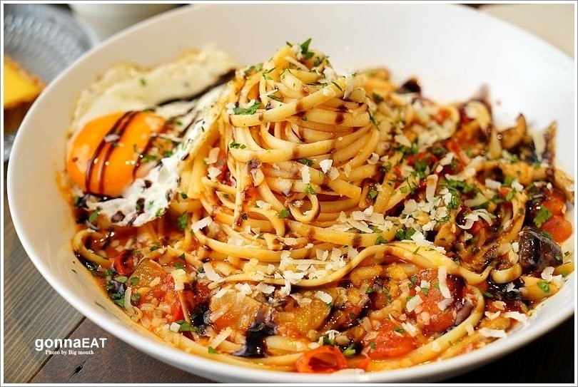 ▼想吃到好吃的內湖義大利麵也沒問題!太陽蛋酒醋野菇麵,採用橄欖油香煎大蒜後,再加入辣椒、自製西班牙番茄醬汁、野菇及義大利直麵下去拌炒而成,最後再加上太陽蛋、陳年酒醋、帕瑪森乳酪、初榨橄欖油、新鮮香草提香,一整個好料滿滿!