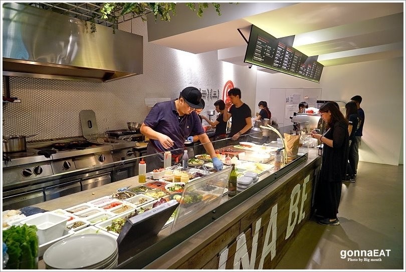 ▼這裡的餐點都是現點現做,透過透明玻璃不僅可以看到製作的過程,還有各式繽紛又新鮮的食材,讓人吃起來更為安心!