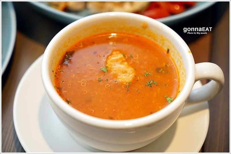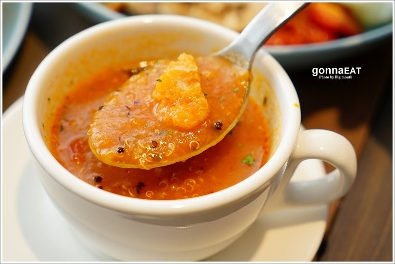 ▼當天享用的湯品是羅宋湯,裡頭不僅有番茄果粒,還有添加藜麥,喝起來微微酸香甜美,除了香醇美味之外也能增加不少飽足感唷!