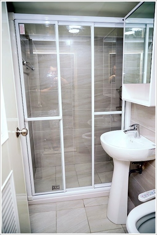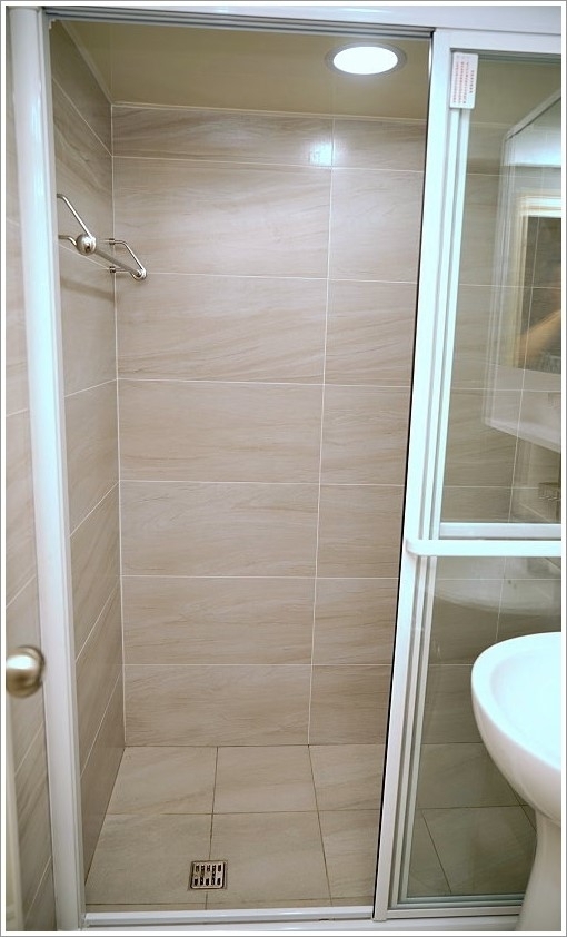 ▼隔了兩天,淋浴拉門的師傅來安裝了(選用ITAI 一太的拉門),為什麼沒見到師傅出現在畫面上呢? 因為他動作實在太快,我才出門買個飲料,回來就差不多快好了! (還是我飲料買太久,哈! ) 總之不到一小時就安裝好了! 然後師傅跟我說早上安裝,等到晚上就可以正常使用了! (這個淋浴拉門與壁磚貼合處採用矽利康貼合,所以半天就乾了! )