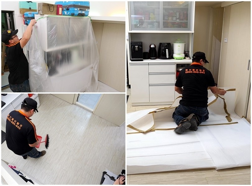 ▼再來會把傢俱的保護材料拆除,地面的保護也是,最後還會把地板掃乾淨,一路從房子室內收到社區電梯、大廳,乾乾淨淨的撤場,這點我想也是一般工班少見的服務,尤其是特力屋收尾後,自己要再清掃的部份也剩沒多少了,以往最怕施工後家裡到處粉塵或髒亂,這點也相當省事,因為他們都幫你打掃完了,自己頂多拖拖地而已。