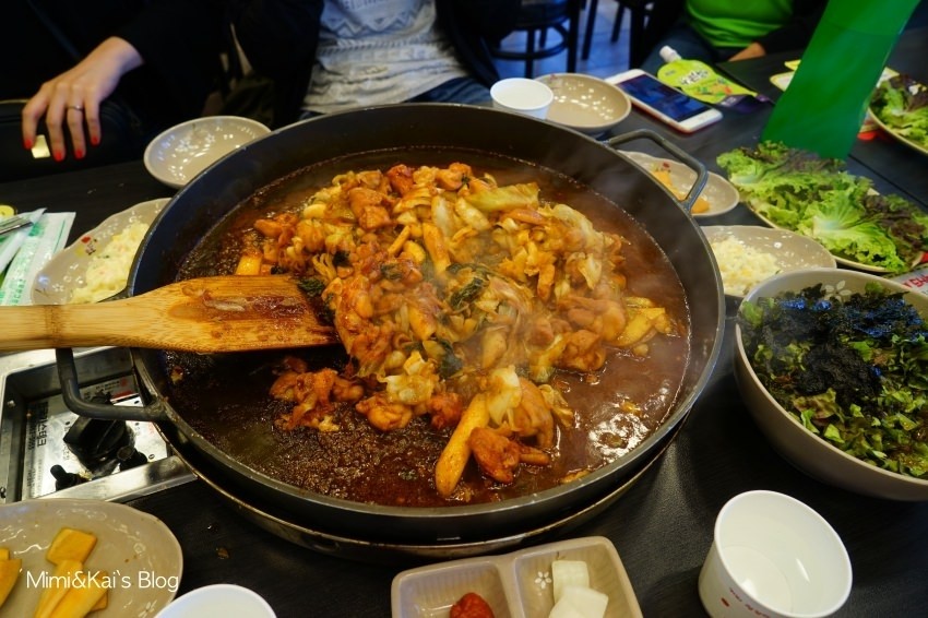 還會有服務人員來幫忙炒個飯,一桌四個人吃超飽。除了中間的炒雞之外,泡菜、醃蘿蔔等小菜都是無限吃,而且這裡還提供了美生菜可以包肉來吃,稍微撫平一下狂吃肉的罪惡感 ?