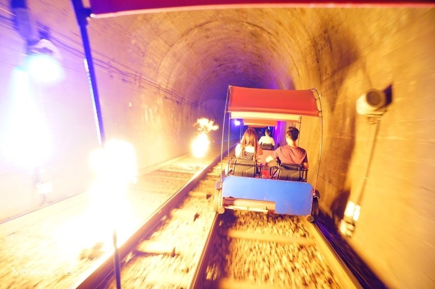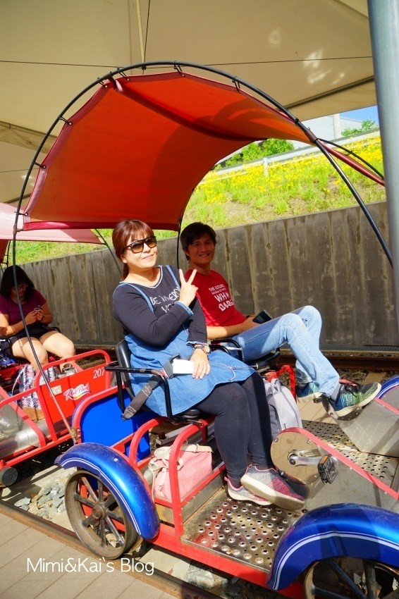 午後安排了這個「江村鐵路主題公園」我覺得滿棒的,一條廢棄的鐵路被賦予了全新的生命,大家可以在鐵路上騎腳踏車!沒看錯!真的就是騎腳踏車,園方打造了一部部能在軌道上移動的腳踏車,讓遊客可以用不同以往的角度來體驗。