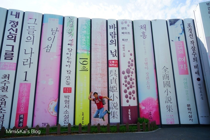 巨大的書牆變成滿好玩的拍照背景