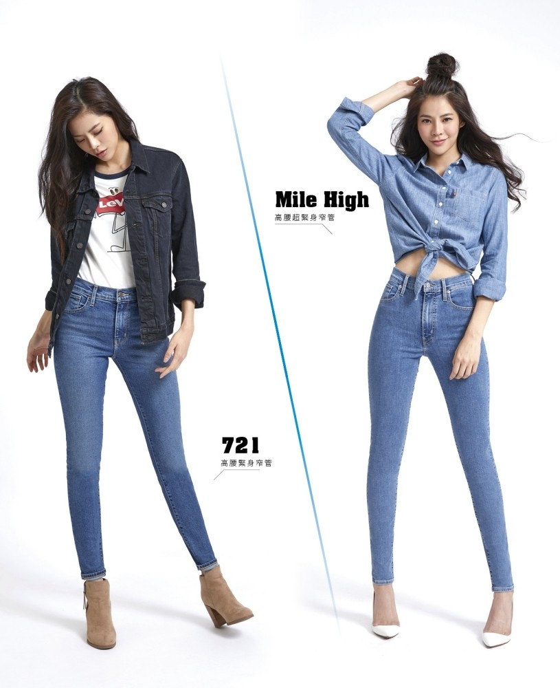 本季全新Mile High極高腰超緊身窄管,前後襠比一般腰線向上多加約6公分,巧妙拉提腰線,一次達到縮腰、豐胸、長腿三大視覺美感,首波推出復古天藍與日式水洗深淺兩種洗色,搭配先進高彈力面料,由臀到腿完美舒適包覆,套件短版Tee或將上衣紮入,大顯迷人腰線;或將襯衫下擺打結,露出性感小蠻腰,超模自信氣場立現!