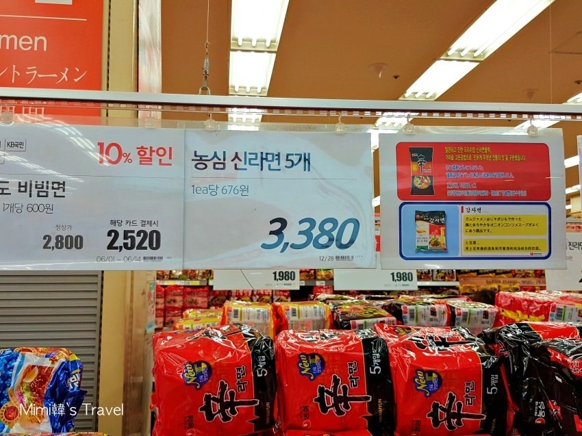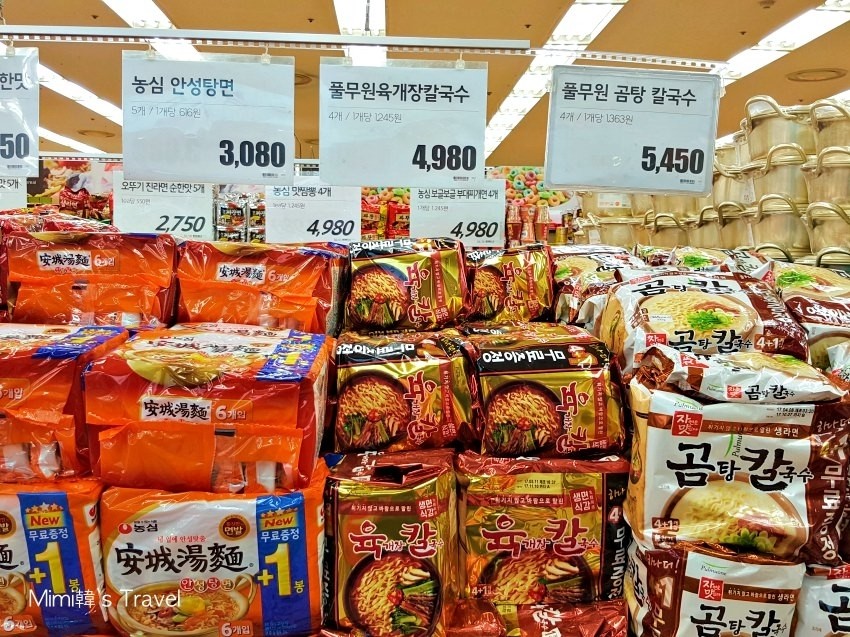 韓國泡麵也是大家掃貨的重點區域,選擇真的是多到爆炸,讓人眼花撩亂,超想全部都搬回去吃一輪看看。