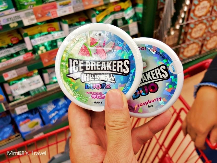 韓國很受歡迎的薄荷涼糖,架上有滿多口味,有草莓、西瓜檸檬、覆盆子、西瓜、薄荷等選擇,台灣雖然也買得到,但價格當然是韓國買便宜很多啦!掃幾盒回家慢慢吃,酸酸甜甜又能讓口氣變好,滿多女生很愛。
