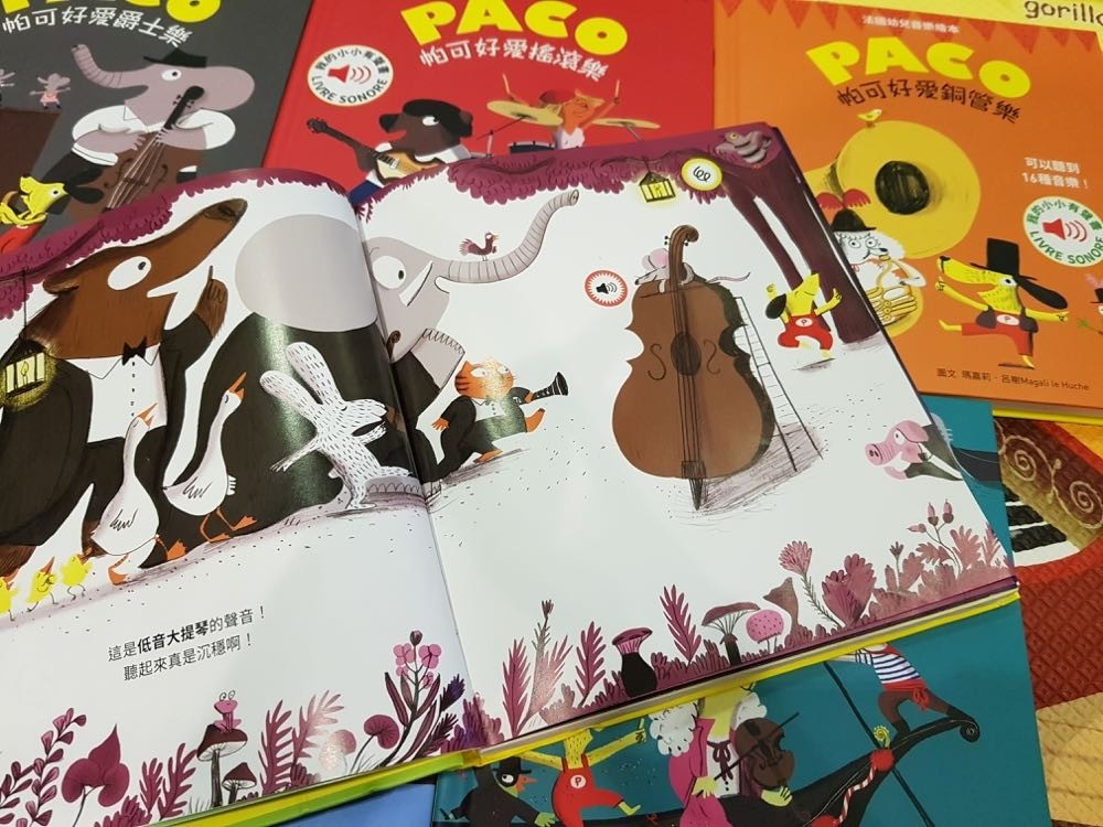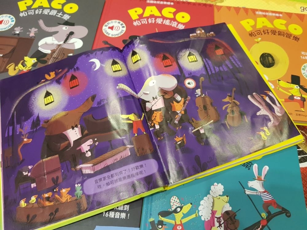 每一本帕可系列都有著 16 種不同樂曲,再搭配上逗趣的插畫,也讓帕可系列成為親子界的書櫃必備之書。