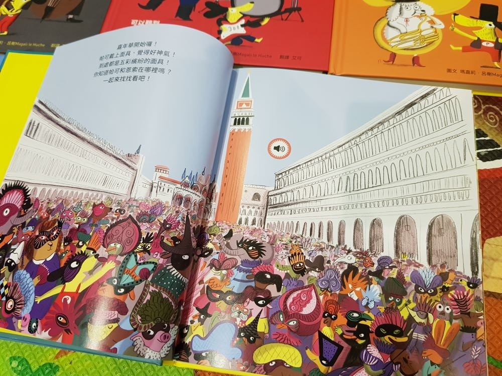 最近帕可系列還推出了韋瓦第和莫札特兩本,書中更是將情境帶到義大利威尼斯與法國巴黎。在韋瓦第的世界中,帕可前往義大利威尼斯參加面具嘉年華,隨著旅行的節奏來到面具廣場、貢多拉船、歌劇院等,再配上韋瓦第的作品,其中更包括了著名的四季春、夏與秋三樂章,讓孩子們有一趟音樂之旅!
