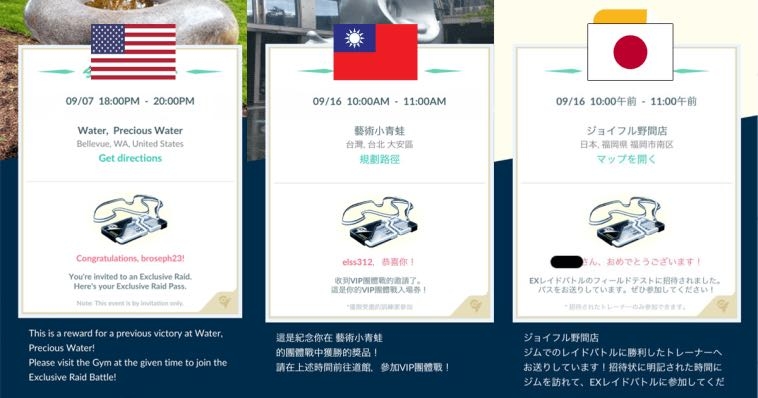 這個消息一傳出來,果然吸引了許多朋友前往圍戰,甚至喚起了許多訓練師的熱血與串起彼此不同陣營的共戰情誼。根據官方表示,美國、台灣與日本是目前超夢開放登場的三個國家,但除了都是需要收到邀請函才具備有捕捉超夢資格以外,美國與日本超夢皆將會出現在贊助的特定道館,台灣則是會隨機出現在一般道館,也因此除了收到邀請函的幸運玩家才有機會知道下一場超夢將會出現在哪裡!