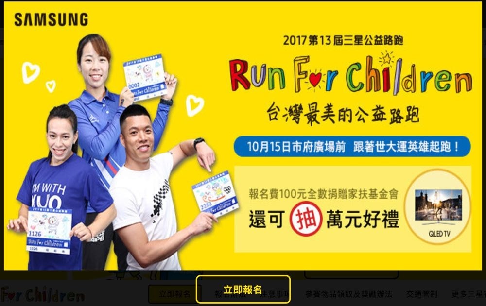 把握最後時刻,線上報名:http://www.samsung.com/tw/campaign/runforchildren_2017/