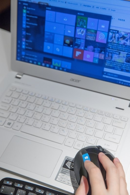 最後,還有一個附加效果,因為是微軟設計製作,所以這個Sculpt滑鼠上面還有一個Windows按鈕,只要輕輕一按就可以打開開始這個功能表