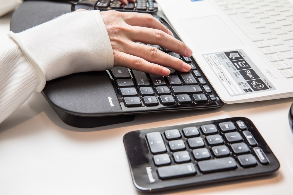 但開始用微軟Sculpt人體工學鍵盤滑鼠組幾天之後,真的很簡單就舒緩不少症狀,因為手腕多了支撐感所以變得舒服了,再往上包括手軸跟前臂,甚至是肩膀跟脖子也都變得比較鬆弛