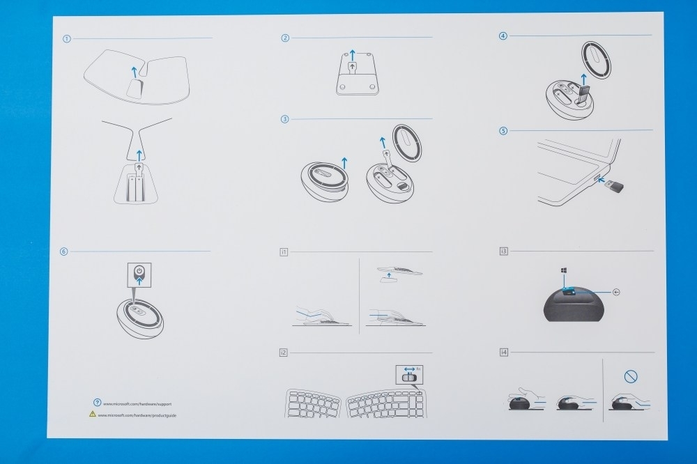 而在正式拿出所有配件前,微軟Sculpt人體工學鍵盤滑鼠組的包裝上蓋也有一些使用說明,像是有獨立電源的人體工學滑鼠跟鍵盤,都需要先打開之後把絕緣紙抽出即可使用