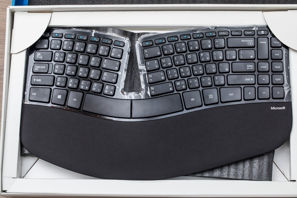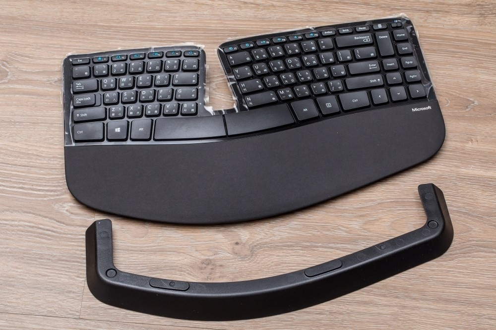 最後的經典,就是微軟Sculpt人體工學鍵盤,基本上又可以分成兩部分,主體當然就是人體工學鍵盤本身,再加上下方還有一個支架