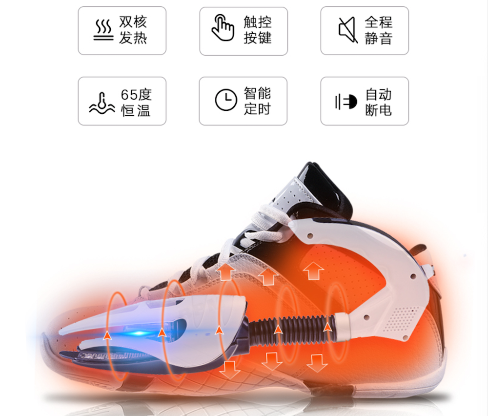 弒菌者淨鞋器還能透過 65 度的恆溫,快速的將鞋內所殘留的腳氣、濕氣烘乾,讓鞋內可以保持乾爽,強化紫外線與臭氧的殺菌能力。此外,由於此產品會發熱,所以內建智慧定時與自動斷電的機制,可防止鞋款在高溫中殺菌而產生危險,不僅能在短短 15 分鐘內達成殺菌除臭,還能有效保障用戶的使用安全。