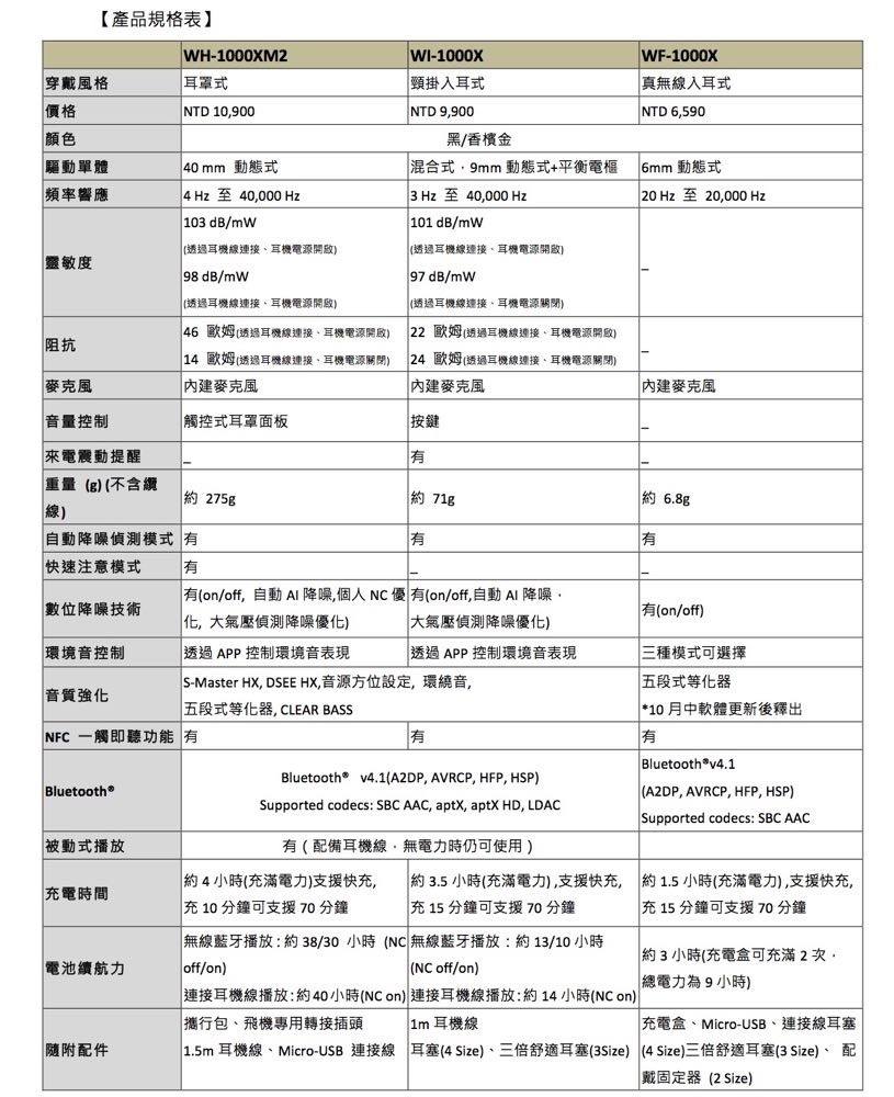 Sony 在今天 (19 日)於台灣發表全新的 1000X 耳機系列,其中主打的獨家智慧降噪 1000X 系列,延續超人氣 MDR-1000X 大受好評的音質及降噪功能外,更結合手機應用程式帶來全新智慧聆聽體驗及個人偏好設定,除了耳罩式無線藍牙降噪耳機 WH-1000X 及頸掛入耳式無線藍牙降噪耳機 WI-1000X 之外,最新推出外型流線時尚的真無線藍牙降噪入耳式耳機 WF-1000X,無論日常通勤或商務飛行,將以領先業界的降噪表現及絕佳的聽感,全面滿足不同使用者的聆聽需求!
