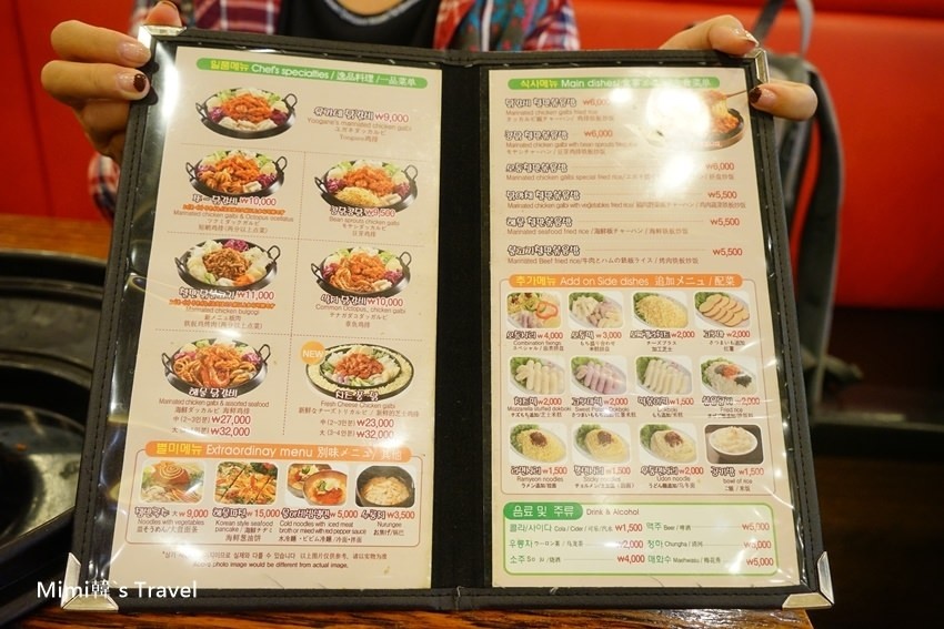 最少的用餐人數是2個人,客單價大約在10000~15000韓元左右,菜單上都有中文,而且還有幾位可以說中文的店員,不用擔心不會點。