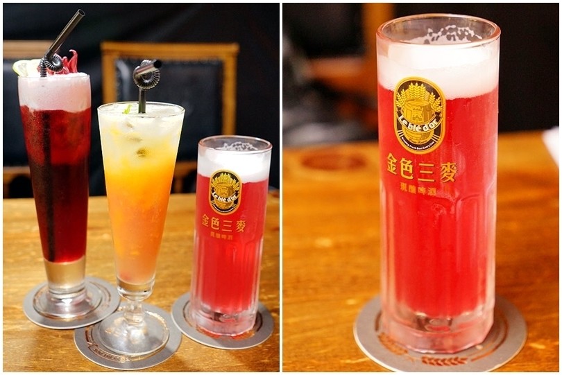 ▼由左而右分別是灩夏紅寶石(150元)、威基基海灘(150元)、紅衣小女孩,灩夏紅寶石採用洛神搭配檸檬片而成,喝起來微酸輕甜,非常適合夏天享用!威基基海灘則是以鳳梨、甜菜根搭配滑順椰奶,喝起來很有夏日海灘的風味!最後一杯則是紅衣小女孩,採用紅色火龍果、覆盆莓等水果,酒精味不重,喝起來酸甜中帶點輕盈的酒意,一整個超應景的啊!