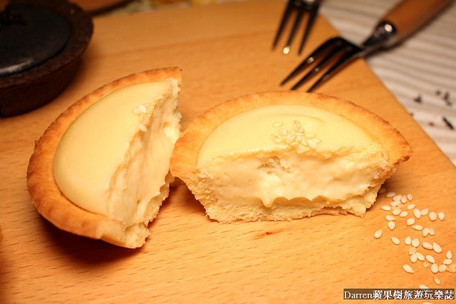 白胡麻起士塔相較於原味起士塔多了撲鼻的白胡麻香氣,吃第一口就能感受到柔軟滑順美味在舌間化開來