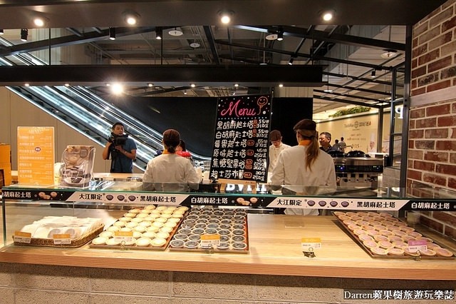 大江店限定口味有白胡麻起士塔、黑胡麻起士塔、烤布蕾起士塔、日本北海道鮮奶霜淇淋聖代等