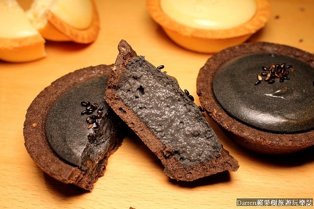 質地單純很容易和起士餡產生乳化,讓製作起士塔的品質穩定,以丸本的黑胡麻以及白胡麻來製作出兩款最新口味的起士塔
