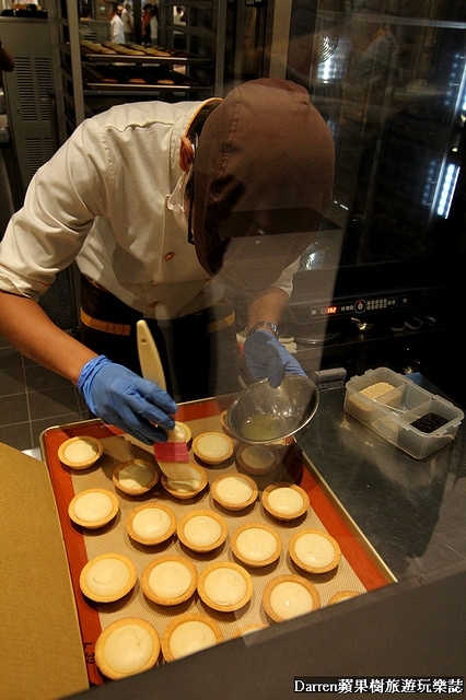 排隊同時除了聞到陣陣烤起士塔的香氣,開放式廚房看到烘焙起士塔的過程,透過玻璃看到超誘人的起士塔排列