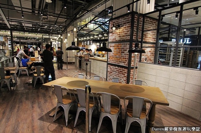 這次在大江購物中心台灣三號店,簡約的用餐空間提供寬敞的座位區,讓大家可以買到起士塔立馬可以享用