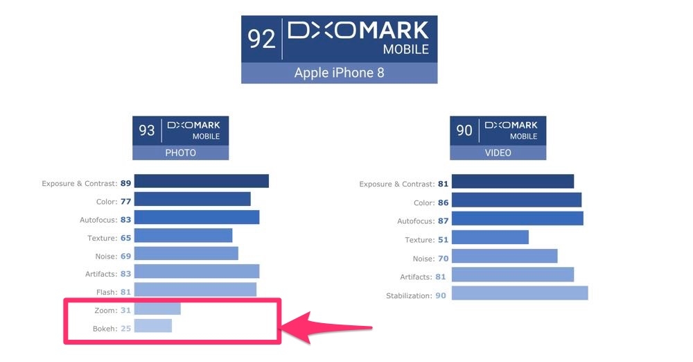 事實上就在日前當 iPhone 8 Plus 登上冠軍排行榜的時候,就已經引起新舊兩個版本不一的爭議。也因此發現 DxOMark 在 9 月 11 日 (也就是 iPhone 8 發表當天)不只公佈了 iPhone 8 Plus 的冠軍寶座,更宣布在手機評比中加入了「Zoom」與 「Bokeh」兩項評比標準。在當時也因為將新舊兩種標準出來的分數對不同手機有著明顯分數差異引發不小的爭議。