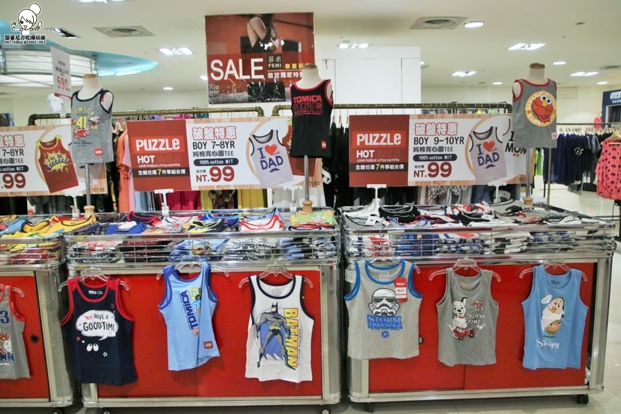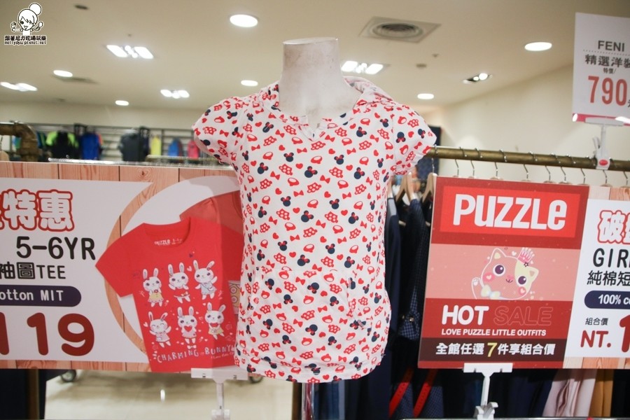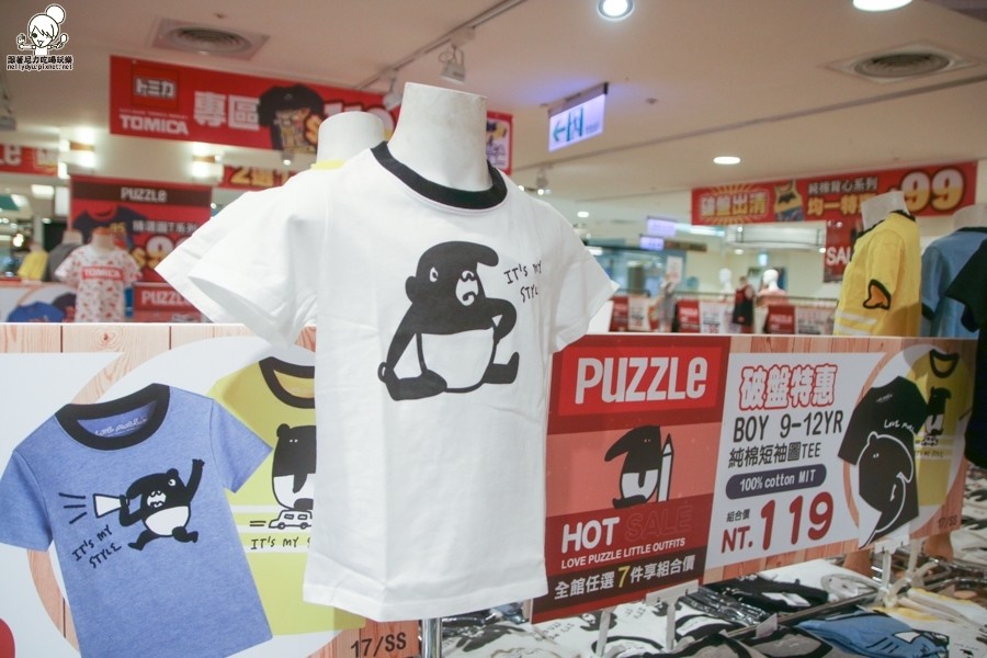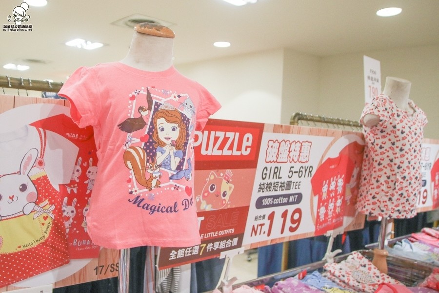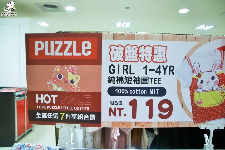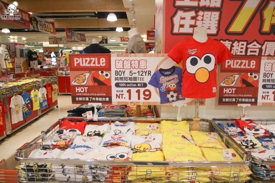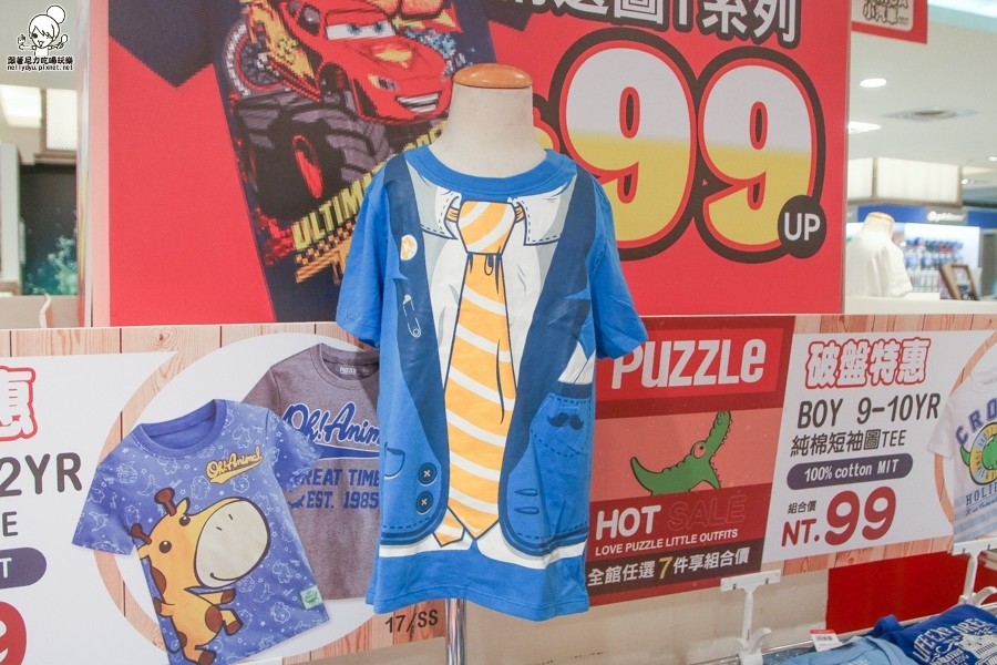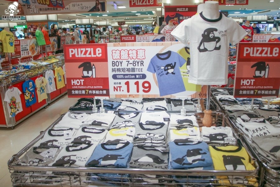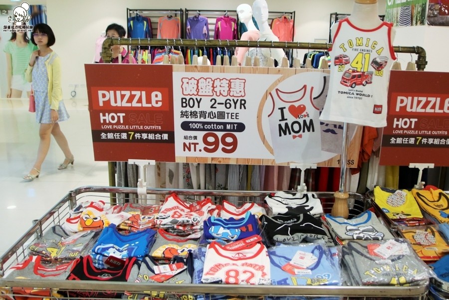 超狂折扣優惠的PUZZLE拍手童裝特賣會,純棉背心99元、圓領T恤119元、過季特賣99元,最狂童裝特賣會